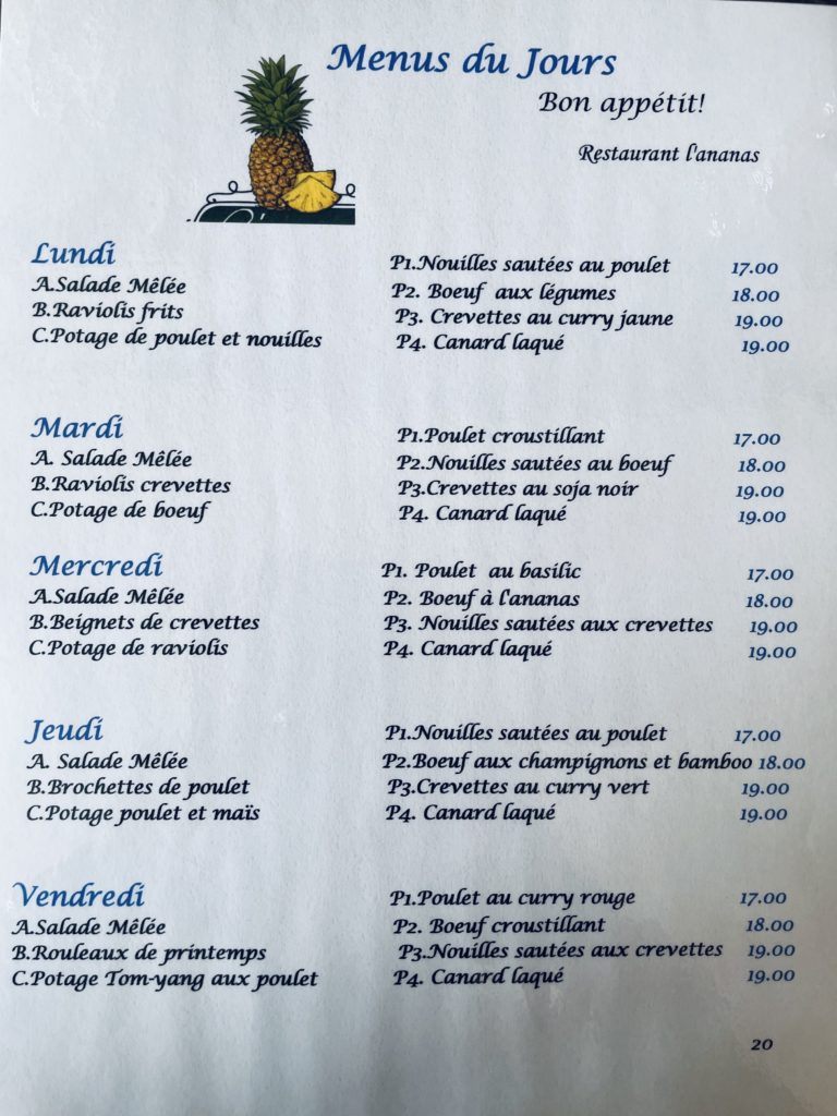 Menu de la semaine